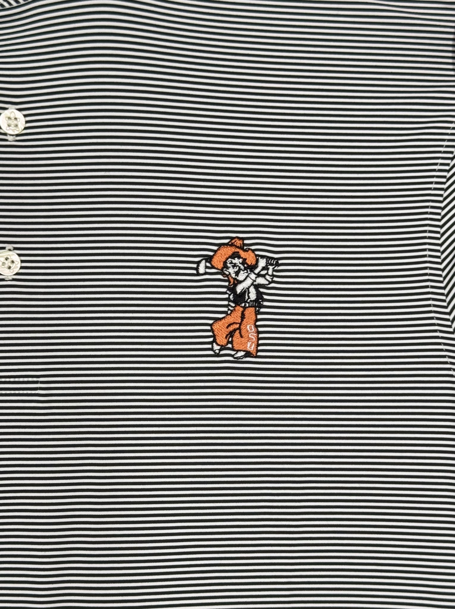The Andrew Performance Polo is defined by its sharp stripes—clean, evenly spaced, and versatile enough for everything from a round of golf to a day in the office. It delivers just the right amount of pattern without being loud, making it a reliable go-to in any rotation.
